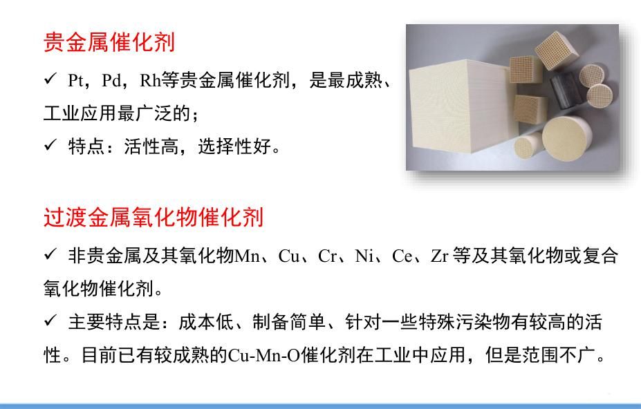 催化劑采用堇青石蜂窩陶瓷體作為先進載體,γ-Al2O3為第二載體,以貴金屬Pd、Pt等為主要活性組分,是一種新型高效的有機廢氣凈化催化劑。